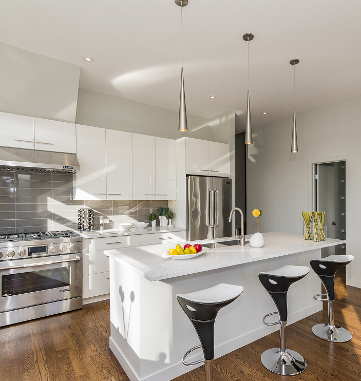 A stylish layout with a central island for extra space.